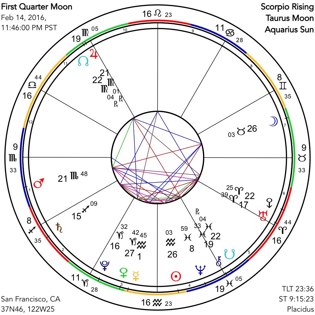 Sunday evening's First Quarter Moon in Taurus represents a moment of adjustment, following upon the prior week's very powerful Aquarius New Moon. This lunar phase in any case signals a period of encountering fresh obstacles to the arc of both internal and external development that was initiated in the New Moon timing. The Moon in practical and Earth oriented Taurus is in one sense a departure from the high-flying energy of Aquarius inspiration, and yet in another sense grounds and completes the initial forward-looking vision of what was originally conceived. This practical side is also in chime with a prominent presence of conservative Saturn, in aspect to the Sun, Venus and Mercury, and remaining in close parallel with transformational energies of Pluto, while Pluto remains in square with revolutionary Uranus. The intense cosmic stew that we have going on right now is urging each of us forward to the place to which our destiny is leading. It might help to recognize that the Universe, like a kind and nurturing, although stern, parental figure has nothing planned for us that we are not, in some way, ready to handle. In response to difficulties we can find in the challenge something to surmount, to learn from, and to therefore grow with, accordingly.