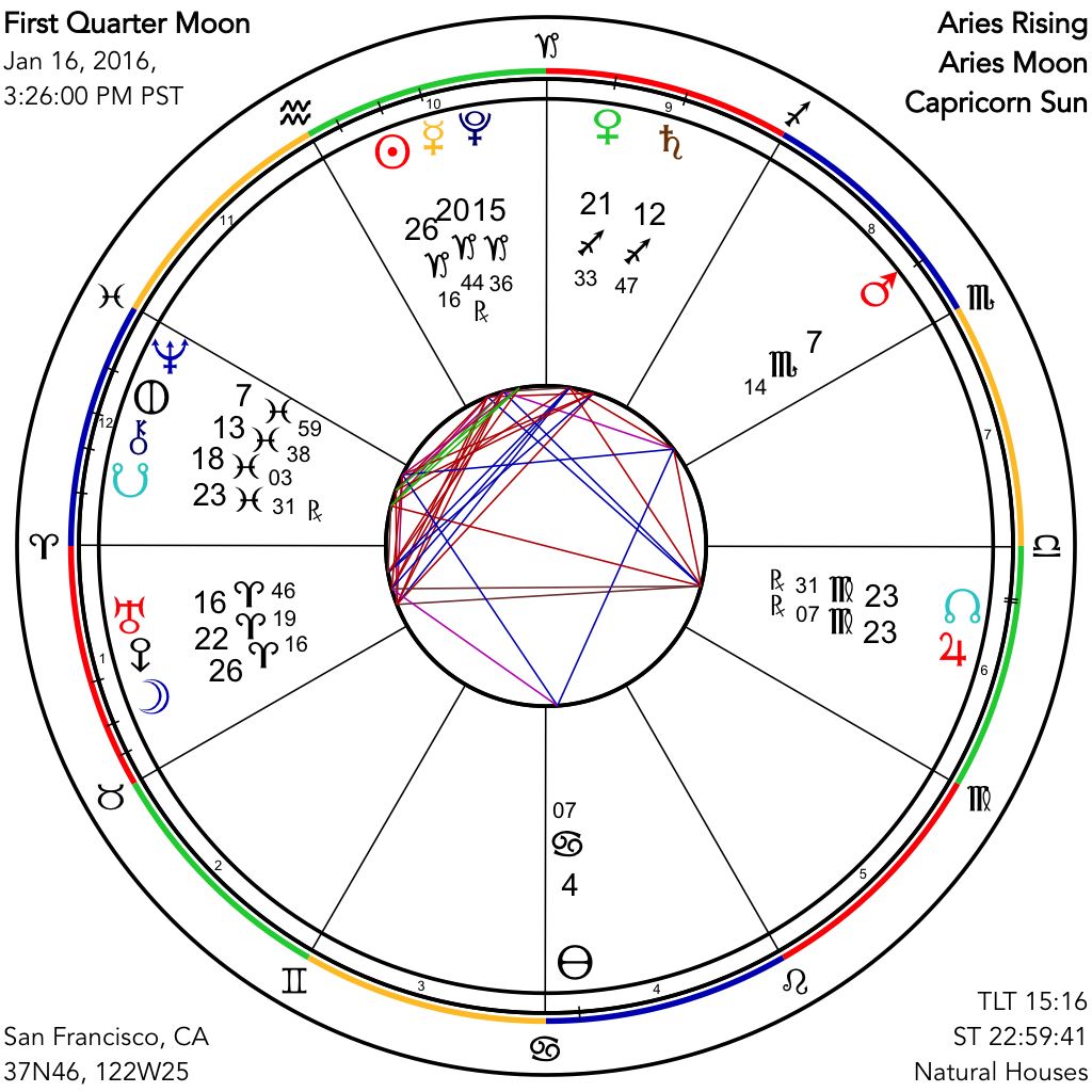 Saturday's First Quarter Moon in late Aries has much to offer, as we arrive at a crucial moment in this January lunation cycle, in the very heart of this current Mercury Retrograde period. Regarding the latter, which has characterized January's Capricorn cycle, we have in these last few days come past the point of the Sun's conjunction with Mercury, one peak moment of the retrograde period, and we are now heading for another, in Mercury's January 25th station to direct motion. This will represent one further stage in our inward-leaning journey of meditative reflection on who we are and where we are truly headed; and to what end. As Mercury straightens out, eventually regaining the sign of Aquarius by mid-February, we will be in a better position to move forward, with surety and confidence, toward a new plan.