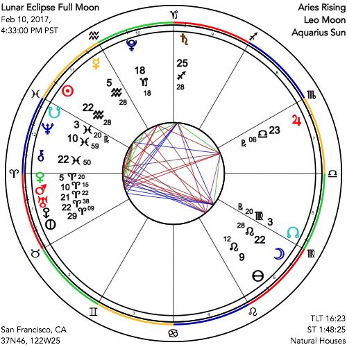 Friday’s Full Moon eclipse in Leo makes for another dynamic lunation, with Uranus, Eris and Saturn emphasized. The eclipse degree is 22 Leo, the same degree that Eris occupies in Aries, so that this distant but powerful planetary archetype for finding inner intention is once again emphasized. So too, once again, is trickster Uranus. The planet of unexpected events and surprising enlightenment is drawing ever closer to Eris, perfecting next month, so that little more than a degree separates them. Therefore Uranus is getting a tremendous boost over this next six weeks or more; unexpected events continue to be the norm. This was very evident recently in the local political scene in this country, when an executive order from the White House banning strictly legal immigration from seven predominately Muslim countries faced opposition from business leaders and states’ Attorneys General, as difficult, costly, and fundamentally unconstitutional This created a dramatic situation with many ups and downs that continues to have the whole world on the edge of their seats. Then, too, for even more evidence of strange and unexpected occurrences, one need to look no further than the recent celebrated super bowl event in Houston, where many records were shattered in the touch-and-go ending that allowed the New England Patriots team to emerge from a 25-point deficit to win an unprecedented overtime victory.