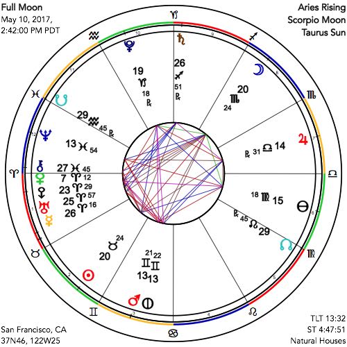 Wednesday’s Scorpio Full Moon aligns closely with change-oriented Pluto in Capricorn, and that feature alone makes for quite a powerful lunation. Mercury is also a vital factor. Finally moving forward again, Mercury is only two degrees away from where it stationed one week ago, therefore remaining in close conjunction, still, with Uranus, half of a degree away. All this time the surprises of the Trickster planet have combined with a wobbly and a tentative Mercury, slowly recovering from its retrograde. It has been a strange time to say the least. Mercury has also moved into a near-perfect trine with Saturn, so that the restrictions and limitations, as well as the needful practicalities associated with this ultimately conservative planetary archetype are very much emphasized. Uranus and Eris are still in active conjunction in this dynamic Full Moon, separated by a mere two and a half degrees, indicating that we have also the archetype of the rebellious spiritual warrior, which translates to standing up for what you hold inside, to the exclusion of all else, including consensus opinion.