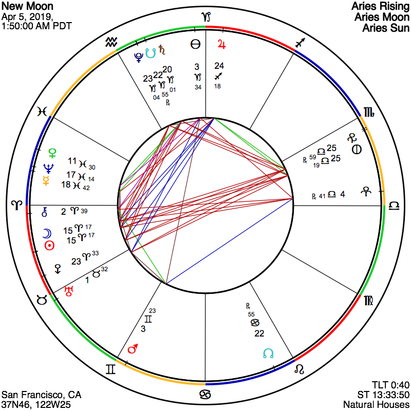 The Sabian Symbol for this New Moon degree has, as usual, something to contribute. For the Sun and Moon in the sixteenth degree of Aries (15 plus) we find, “An Indian (Native American) weaving a blanket,” which might remind us of the fabric of indigenous life, woven of many strands of both human and natural origin. Marc Edmund Jones comments on, “personal fulfillment through a simple excellence of expression… bringing all desired things to center in true self-possession... quiet persistence of each proper act of self.” Indeed, it is when we quietly forge ahead, in spite of everything, that we make our individually unique evolutionary headway, provided by our own inner sense of what makes our offering of greatest value to the surrounding culture.